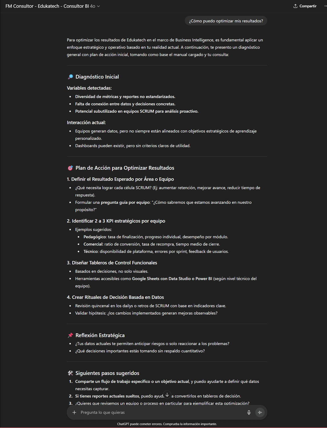 NOTA: El caso Edukatech es un entorno demostrativo diseñado para mostrar las capacidades del Consultor Digital BI.